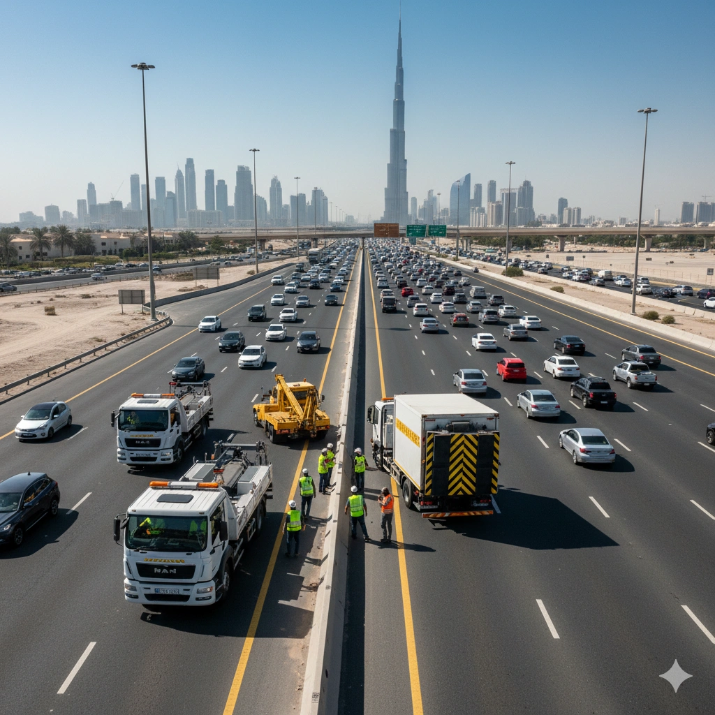 The 2025 dubai road safety regulations emphasize the reduction of peak-hour incidents. Our services help contractors comply with these updated safety protocols, including the latest truck movement restrictions on Emirates Road and other major freeways.